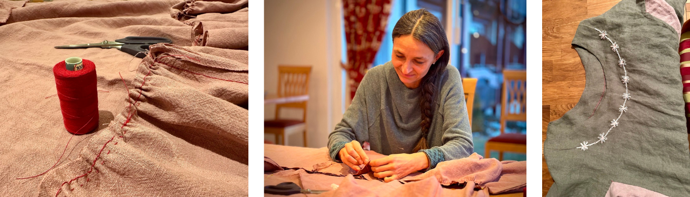 Im Laufe des Nähens zeigte sich, dass dieser Prozess fast wie eine psychosomatische Selbsterfahrung wirkt. Das Kleid ist am Ende ein wunderschönes Nebenprodukt – doch der eigentliche Schatz liegt in dem, was sich währenddessen zeigt.